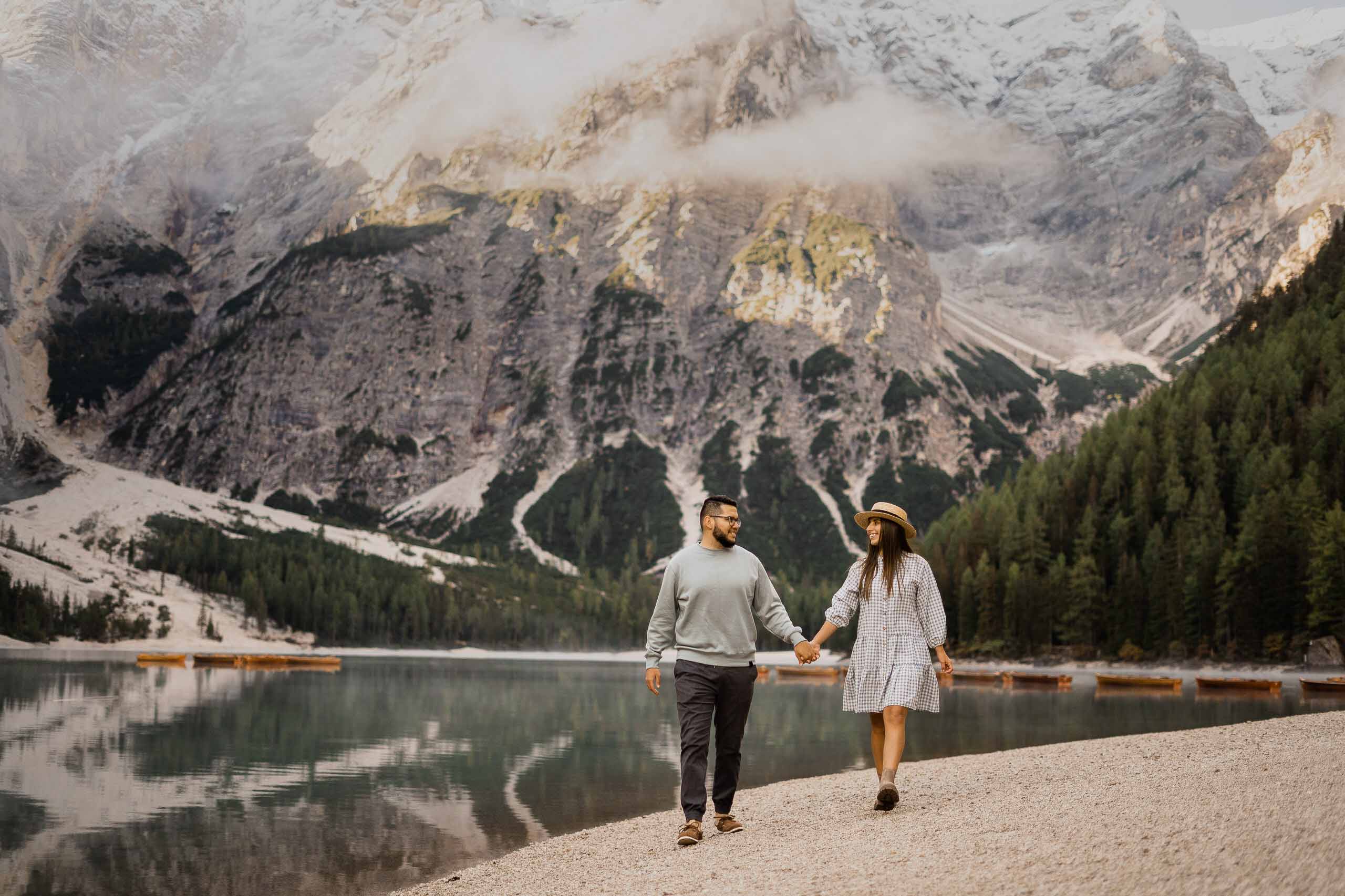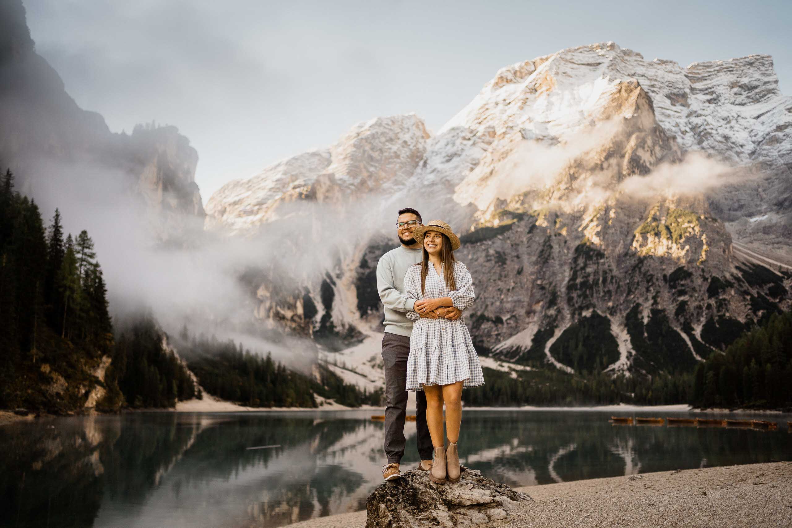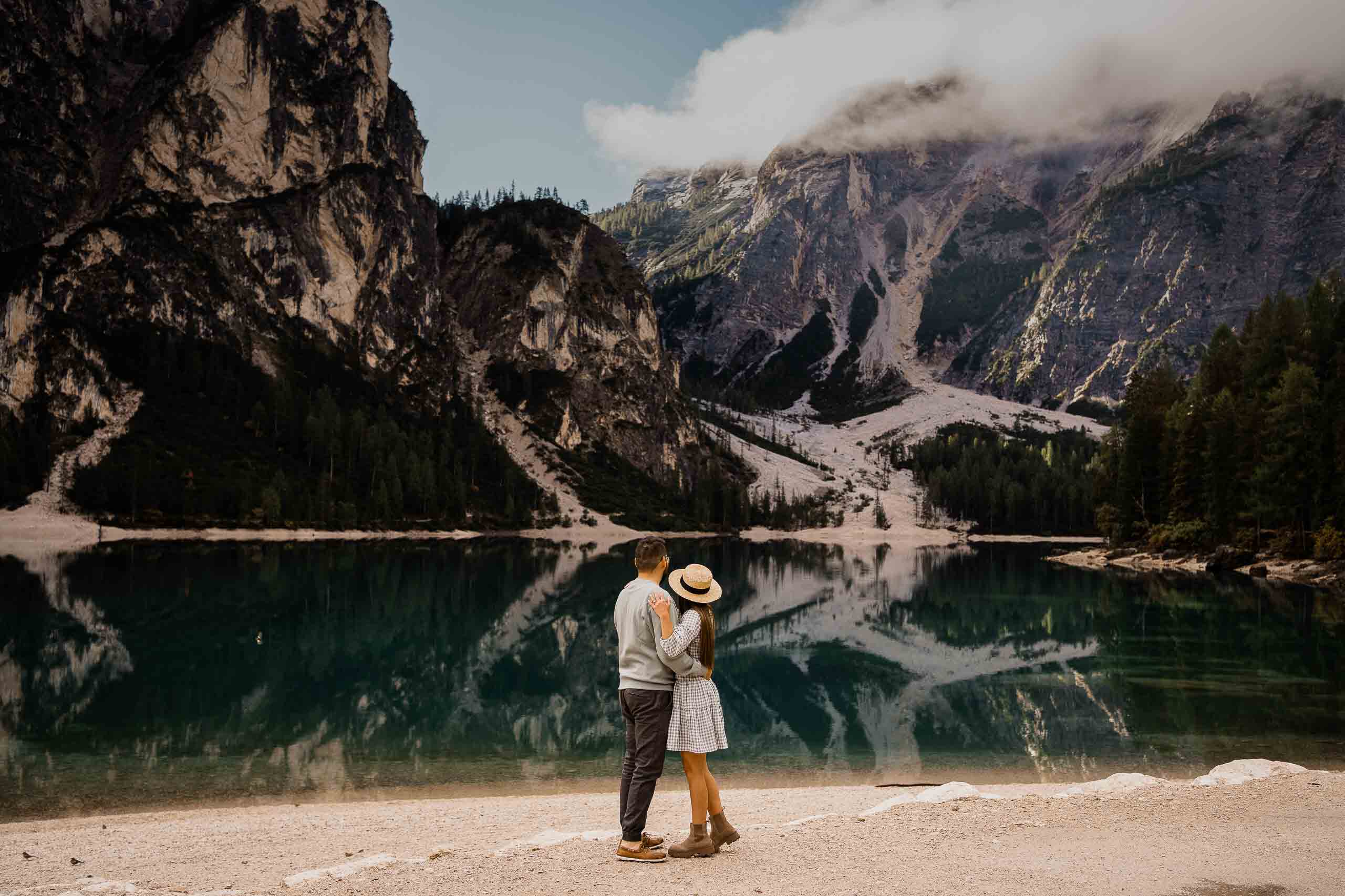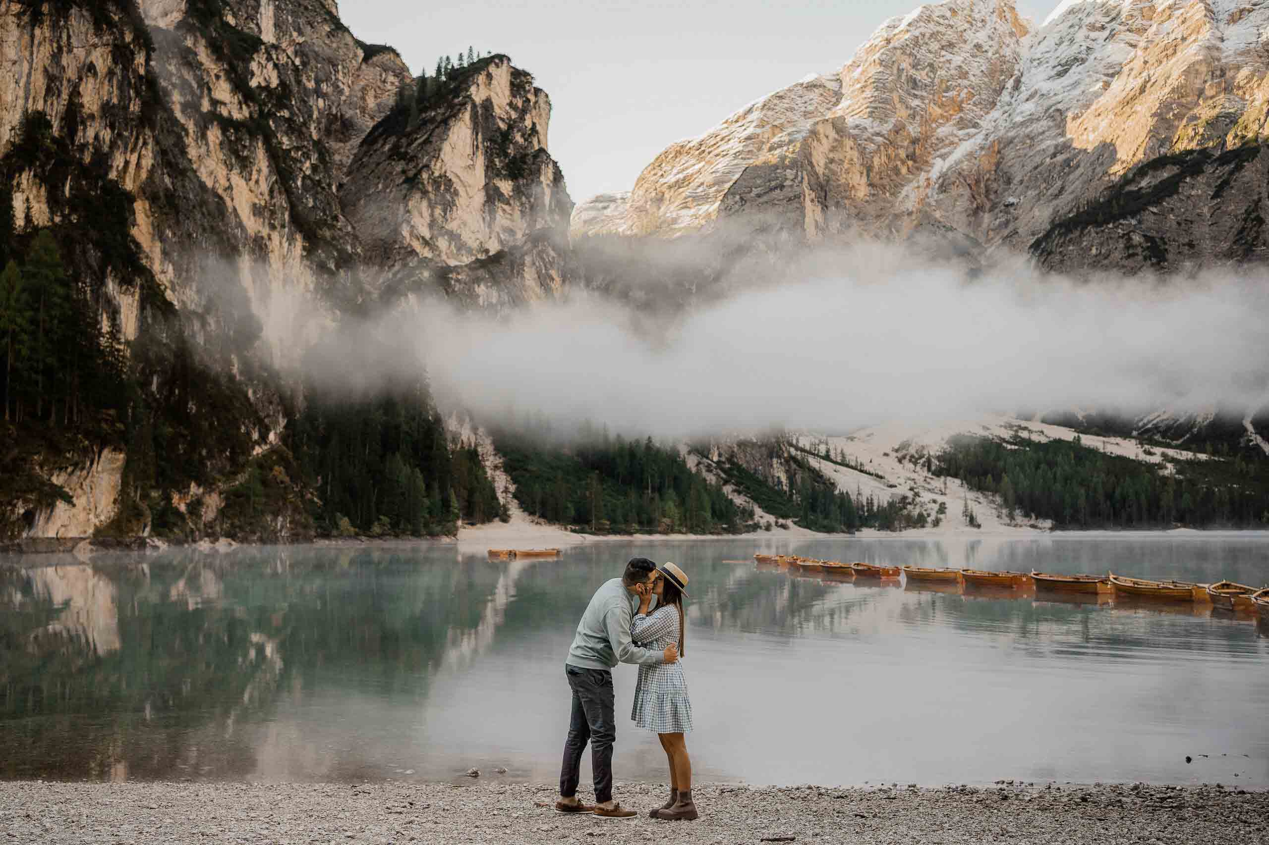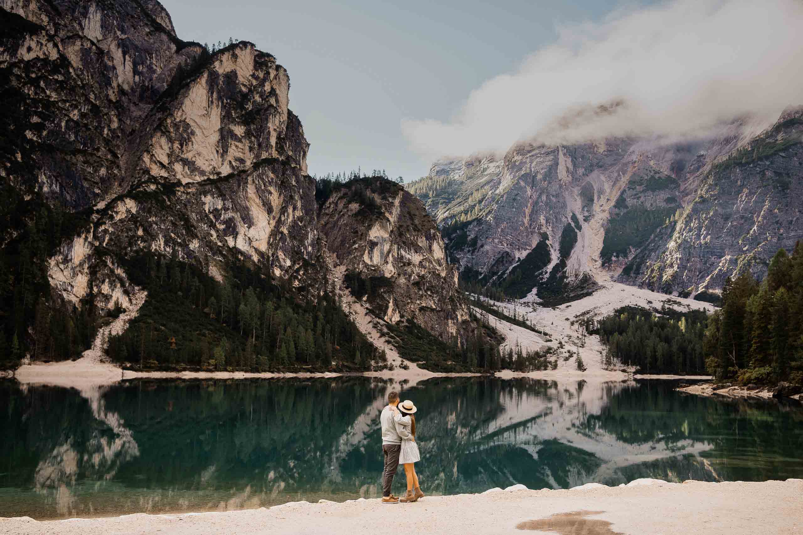 We have an exciting tale to share with you, one that revolves around a couple’s journey to the breathtaking Dolomites and a heartwarming surprise proposal. This September, as the golden hues of autumn embrace the landscape, our adventurous couple finds themselves drawn to the captivating allure of Lake Braies. Join us as we unravel their love story and the unforgettable moments that unfolded in this dreamlike destination.